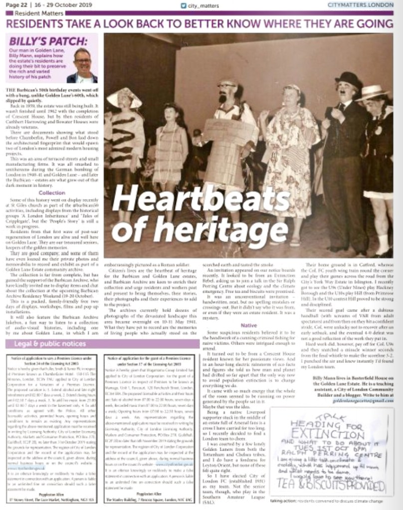 The collection is far from complete, but has gained the support of the Barbican Archive, who have kindly invited me to display items and chat about the collection at the upcoming Barbican Archive Residency Weekend (19-20 October). This is a packed, family-friendly free two days of displays, workshops, films and pop-up installations. It will also feature the Barbican Archive Jukebox, a fun way to listen to a collection of audio-visual histories, including one by me about Golden Lane, in which I am embarrassingly pictured as a Roman soldier.