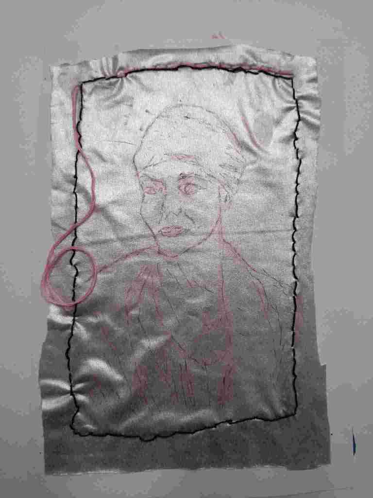 I had attempted to capture this woman’s image previously in a stitching project I abandoned because the rubbery fabric was no good for back-stitch.