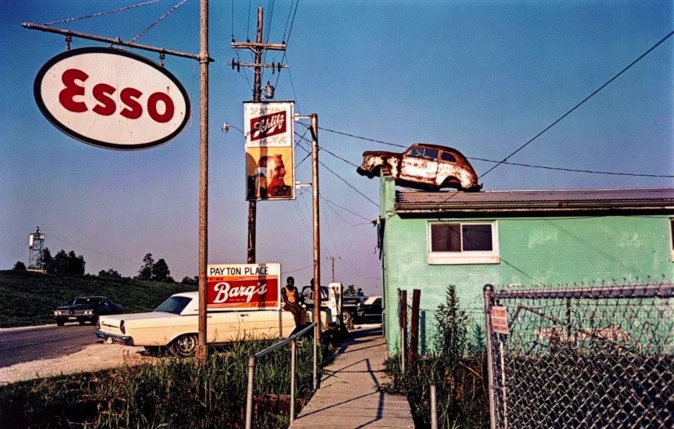 I seemlessly brought together my prepared speech about line, colour, oddness and Eggleston’s use of text, with some of his other photographs. The ones that hadn’t gone missing.
