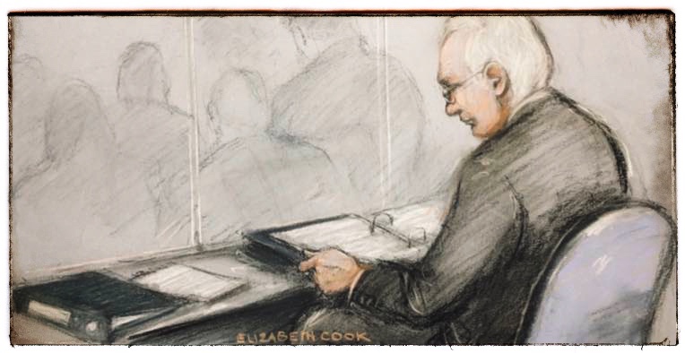 >> An artist’s image of Julian Assange in court was published in the Morning Star today. It makes a good lookylikey game.