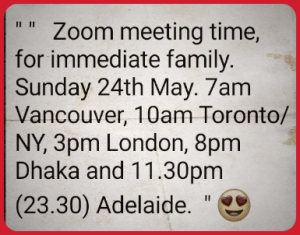 Saturday, London The theme for this week’s Covid Coffee & Chat was red. Gill’s wig won the show.