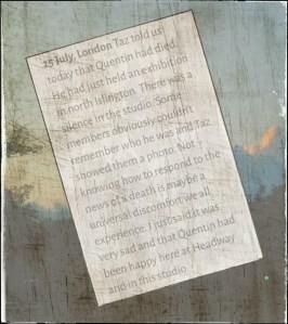 It was meant to capture some kind of hazy gloom, a blue funk that lurks undetected in the mists of your mind. I sent it to Michelle and she posted some studio pictures of Quentin on Instagram.