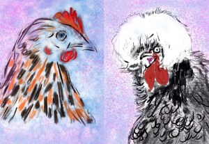 Then today Alex talked us through her fascination with weird chickens (think cartoon characters and bizarre fashion styles) and we all had a go at drawing some.