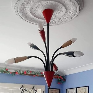 SUNDAY, WINCHESTER Our host Liz has two shelves in the “entertainment alcove” on which an assortment of knick-knacks collected over the years sit alongside the TV, turntable, amp and speakers.