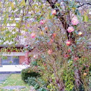 # The annual gathering of estate residents for Halloween went off safely and smoothly. There were plenty of free cakes to eat, soup and other hot drinks. I was reprimanded by a 9 year-old for entering the Under-5s playground to take a picture of a rose bush I had mistaken from a distance to be a pumpkin tree.