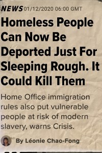 From Tuesday, rough sleeping will become grounds for refusal or cancellation of permission to be in the UK.