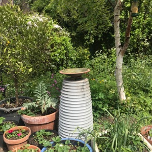 📌 Bev made a temporary stand for Faye’s memorial birdbath. I emphasise the word temporary.