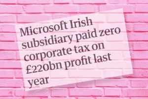 📌 One of the people at the Pinchpot Portraits workshop I did on Tuesday said they were boycotting Amazon because of their tax-avoidance stunts. I wondered then if tax had at last become a “cut-through” subject for the general public. Today’s story about Microsoft makes me think tax has at least made it to the agenda on “fairness”, whatever that is. Maybe the growing number of workers outside of the PAYE system has something to do with it.