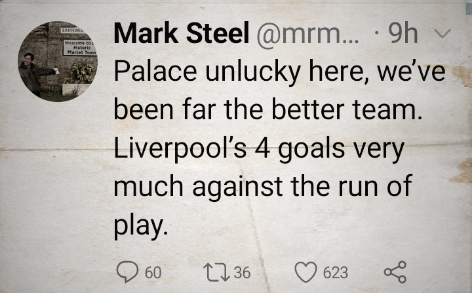 📌 Liverpool found their form in an empty Anfield and thrashed Palace 4-0. Mark Steel was watching.