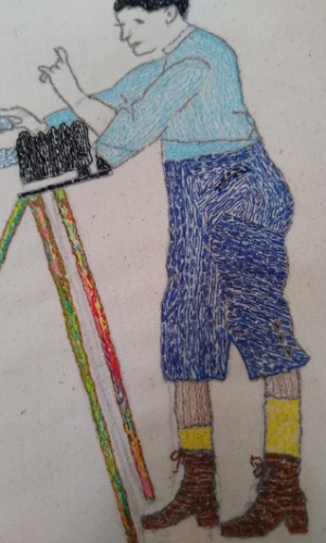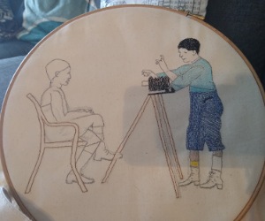 FRIDAY 18 Agreed with Cristina to do a monoprinting workshop at Autograph next month. Hope I can use the archive image of the two boys playing at a photo shoot. I’ve already tried it as a monoprint and it is now my current stitchwork project.