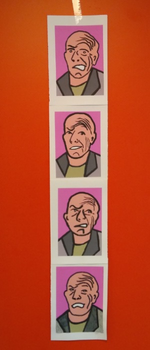 📌 At art class I finished the four A4 pictures of Chris, which are meant to resemble a giant photo-booth strip of passport mugshots. Then we ate cake.
