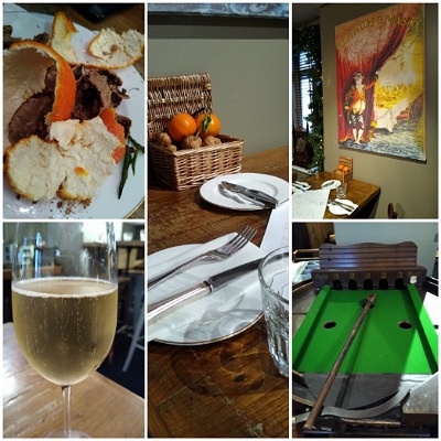 📌 To the Spoons in Croydon for lunch with Sue and Margaret. Margaret gave Sue a knitted tree bauble made especially for a Palace fan. Chicken with stuffing burger for me.