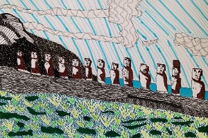 📌 Sam put some very spooky clouds into her picture of those stony faces on Easter Island.