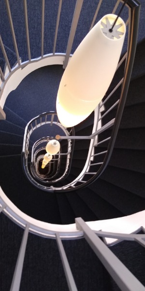 📌 Our hotel in Basel has a staircase that is reminiscent of scenes from Alfred Hitchcock’s Vertigo.