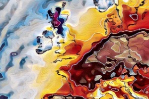 THURSDAY 11 I used the AI generator to make a pop-art version of a weather map of Europe showing abnormally high temperatures for this time of year.