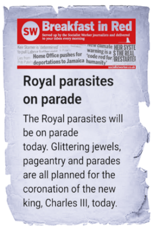 SATURDAY 6 King Charles might have plans to “modernise” the monarchy, but over at the Socialist Worker, very little changes…