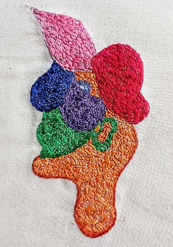 THURSDAY 20 The stitchwork of Hawaii, based on a contour map, is finished. It is one of those patterns that can be re-used on different fabrics with different threads. Simplifying the pattern is always the hardest part of the process when using maps as a starting point. What looks good on screen is not always easy to convert into something that looks good, or even works at all, in stitch.