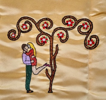 📌 The Garden of Eden Reimagined stitchwork is finished and I quite like the crumpled gold satin. Adam & Eve are clothed, obviously, and the apples on the Tree of Life are now edible flowers. I tried to get the tree to double up as a snake, but I’m not sure that’s entirely successful.
