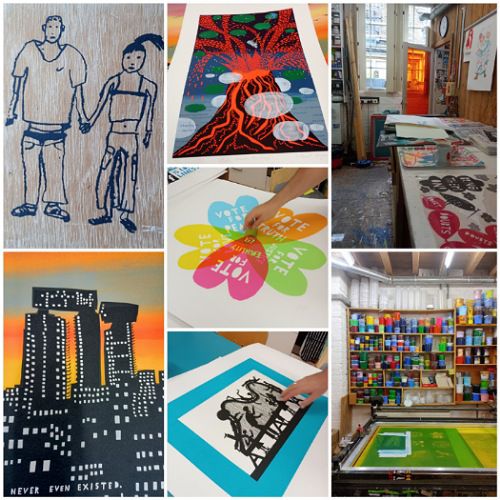 Screen printing words and expressions I learned were “snap”, which is the distance between the print bed and the screen, and “printy”, which describes an imperfection that somehow renders the finished print more authentic in appearance, more hand-made.
