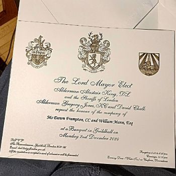 📌 Dawn passed on my invite to the Lord Mayor’s Banquet. I didn’t know I was Dawn’s +1 and it gave me the idea that should we be introduced to the Lord Mayor or the Prime Minister on the evening of the banquet we should fake the story that I am her father, who abandoned her mother 45 years ago and have recently been reunited after my long spell in prison.
