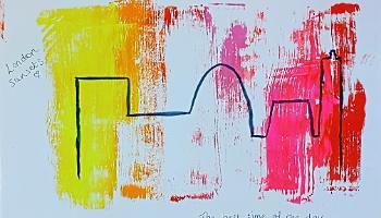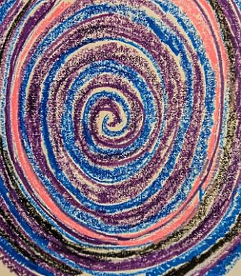 WEDNESDAY 5 At the Dayroom workshop at the Royal London the revelation was a patient called Winnie who, totally unprompted, drew a spiral combining blue, purple and pink. It was as if she’d read my mind. Jo responded with a wave pattern using the same colours.