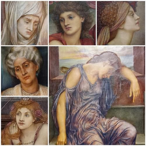📌 At the Guildhall Art Gallery we saw paintings by Evelyn De Morgan (1855-1919). The publicity department describes her as “a pioneering artist whose richly coloured paintings reflect themes of feminism, spirituality, and a passionate rejection of war and materialism.” Yes, ok, up to a point. All of that probably came quite easily to the silver-spoon privileged classes of Victorian England. Her skin tones are impressive, her sketches beautiful. Her books are always on the floor, open at a significant page. But all of her women are seen carrying the baggage of tragedy, a very classical, stifling tragedy. Their misery is meant to be mythological, but unfortunately they all just look like bad actors at work.