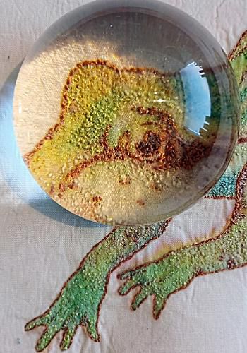 📌 My pocket stitchworks get dragged from pillar to post, pulled out and tossed around carelessly. They are for me like a notebook. I use them to experiment with stitches and blending colours. They inevitably emerge looking wrecked, which annoys my studio manager. I spill tea on them, drip blood from pricked fingers. Nevertheless, I’d never be without one and they probably say more about me than any of the finely finished work I also do. In this one I used stitches so small you need a magnifying glass to get the picture.