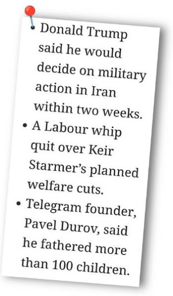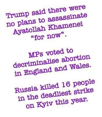 SUNDAY 15 The news outlets are full of speculation that Israel’s attack on Iran was designed by Benjamin Netanyahu to draw Trump’s America into an all-out war. He might have succeeded, though Trump will feel unhappy at being outmanoeuvred and could now decide to pull a stunt of his own.