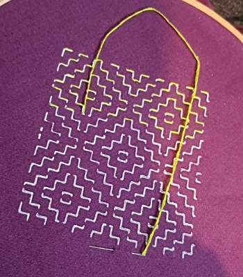 📌 I finally finished the Sashiko stitchwork tote bag I started in a workshop a few months ago. It was a proper botched job at the end but it left me with an appetite for more formulaic geometric stitchwork, so I’ve already started on a second one in which I will mix the colours purple, lime green and pink.