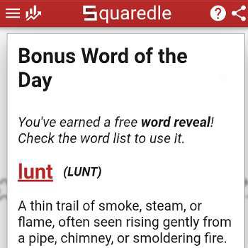 SATURDAY 16 If you find the Bonus Word of the Day, Squaredle gives you a free reveal to add to the single reveal already allowed. Only if I get the BWOTD do I permit myself a reveal. Otherwise I stagger on not using the reveals.