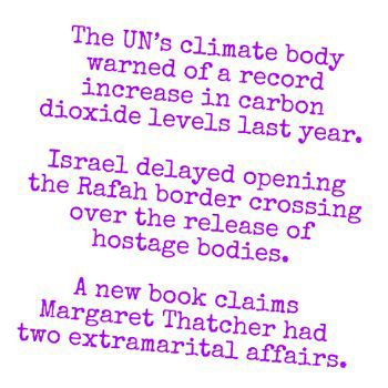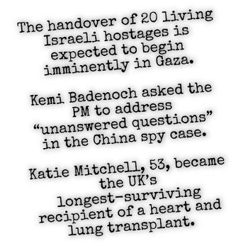 FRIDAY 24 Interesting to see two examples of counter-spin on recent political events. The win for Plaid Cymru in a Welsh by-election is being parlayed as a defeat for Labour but an even bigger defeat for Nigel Farage’s insurgent Reform UK, who came second. And in the controversy around the inquiry into grooming gangs, the resignation of four survivors from the panel and their demand for safeguarding minister Jess Phillips to resign is countered by the announcement that five survivors will only stay on the panel if Phillips continues in post.