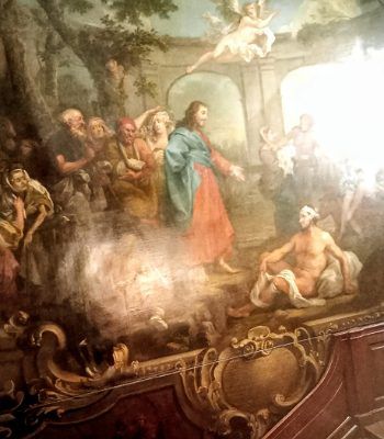 📌 At a Culture Mile event to celebrate the reopening of the Great Hall at St Bartholemews Hospital I dared to comment to the Liverpudlian tour guide that a shady part of William Hogarth‘s Grand Staircase paint job appears to show someone who looks not a lot unlike William Hogarth, painting with a long stick because he was such a shortarse.