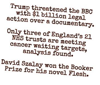 TUESDAY 11 I will be fascinated to see how the government handles the BBC coup controversy and Trump’s threat of legal action. It could be a defining moment. Stand up to Trump, protect the admittedly flawed BBC. That sounds like a plan to me, though by the end of the week I could be eating my words.