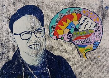 📌 In the studio yesterday I noticed that Ken has finished his monoprint of me and the stitched brain I did for the Royal London Hospital.